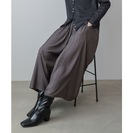 たっぷりと生地を使用したゆったりシルエットで、体型を拾わずリラクシーな穿き心地。シンプルながら動きのあるラインで、大人の抜け感を演出します。オンにもオフにも使える万能デザインです。