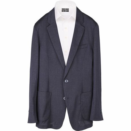 【動きやすい】洗える2釦ジャケット ネイビーシャドーストライプ柄 ストレッチ素材 吸水速乾 清涼