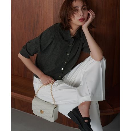 五分袖丈のシルエットが大人っぽい印象のポロニットカーディガン。袖口と裾は締め付けすぎないイージーな着用感で、リラックスしながらも上品に着こなせます。ボタンを閉めて一枚着のトップスとしてはもちろん、インナーにカットソーを合わせたり、ワンピースの上に軽く羽織ったりと、幅広いスタイリングが楽しめます。オフィスシーンからデイリーまで、着回し力が高く、きれいめスタイルがお好みの方にもおすすめです。カラーは、洗練された印象のグレー(#004)、印象引き締まるブラック(#005)、やわらかな印象のベージュ(#033)、フェミニンさのあるブラウン(#054)、アクセントになるブルー(#070)の5色展開です。