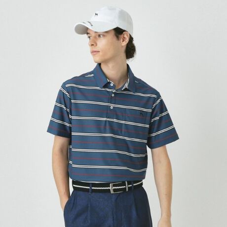 【立体感あるマルチボーダー素材の半袖ポロシャツ】