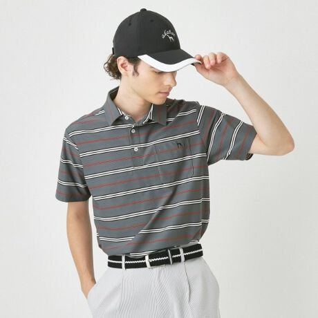 【立体感あるマルチボーダー素材の半袖ポロシャツ】