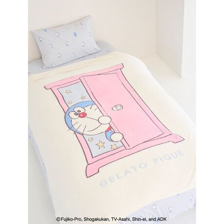 幅広い世代の人気キャラクター『ドラえもん』の世界観を、ジェラート ピケらしいデザインに落とし込んだ、楽しさと心地良さがいっぱいのコレクションが登場しました。どこでもドアからこちらをのぞいているドラえもんと、ちょこんとお座りしたドラミが可愛いジャガードマルチカバーです。ベッドやソファなどに添えるだけで、お部屋を楽しい雰囲気に演出。軽やかな‘エアリーモコ’素材なので、ロングシーズンでご使用いただけます。色はドラえもん柄のオフホワイト、ドラミ柄のピンクの2色展開。同シリーズの寝具セットや、ジャガードピローケースと合わせるのもおすすめです。
