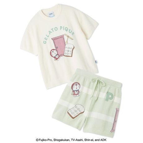 幅広い世代の人気キャラクター『ドラえもん』の世界観を、ジェラート ピケの優しいルームウェアで表現した、楽しさと心地良さがいっぱいのコレクションが登場しました。表情豊かなドラえもんやドラミのジャガード柄に、ジェラート ピケらしい配色のボーダーを組み合わせたプルオーバーとショートパンツのセットです。軽やかな着心地の‘エアリーモコ’を使用した、ベーシックで着やすいシルエットに仕上げました。プルオーバーはオリジナルの絵柄によるドラえもん・ドラミ・ひみつ道具の各モチーフに、アーチロゴジャガードを組み合わせたデザイン。ボーダー柄ショートパンツには、トップスと同様のモチーフとPのサガラ刺繍が入っています。色はドラえもん柄のブルー、ドラミ柄のピンク、ひみつ道具柄のアイボリーの3色展開。同シリーズの雑貨を合わせたり、HOMME、JUNIOR、KIDS、BABYサイズとリンクコーディネートもお楽しみいただけます。