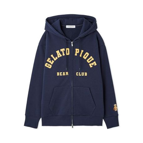 色々なスポーツを楽しむピケベアをテーマに、トレンドのスポーツテイストを取り入れたシリーズです。柔らかな肌触りで着心地の良さを大切にした、ダブルジップ仕様のHOMMEサイズの裏毛パーカ。1枚でもレイヤードでも着こなしやすいゆったりとしたシルエットに、明るい配色のアーチロゴをアクセントにしました。左袖口にはベースボールを楽しむベアの絵柄を刺繍。ポーズやお顔の表情までこだわった、gelato piqueらしい絵柄になっています。同シリーズの裏毛ハーフパンツや総柄プリントのハーフパンツ、雑貨類を合わせるのもおすすめ。LADIES’サイズとのペアコーディネートもお楽しみいただけます。