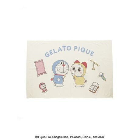 幅広い世代の人気キャラクター『ドラえもん』の世界観を、ジェラート ピケらしいデザインに落とし込んだ、楽しさと心地良さがいっぱいのコレクションが登場しました。ジェラート ピケらしい淡いカラーリングで描かれた、2種類の絵柄のブランケット。オフホワイトは、ドラえもんとドラミの周りにひみつ道具を散りばめた絵柄。チャコールグレーは、ベッドで気持ちよさそうに眠るドラえもんを描いています。それぞれにアーチロゴも添えたキャッチーなデザインで、膝掛けやベッド周りのインテリアとしてもご使用いただけます。同シリーズのルームウェアと合わせてお楽しみください。