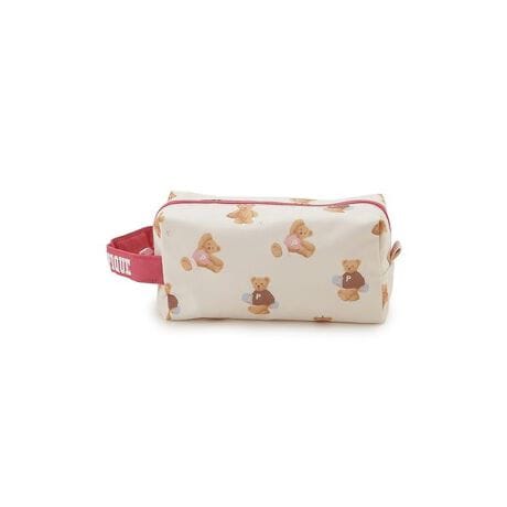 色々なスポーツを楽しむピケベアをテーマに、トレンドのスポーツテイストを取り入れたシリーズです。ベースボールやストレッチ、スケートボードを楽しむ3種類のポーズのベアを、総柄でにぎやかにプリントしたポーチです。持ち手の部分にカレッジロゴを刺繍し、フック等に掛けておくことも可能。内ポケット付きでマチありのデザインなので、メイクポーチから旅行時の小物収納まで幅広くご使用いただけます。同シリーズのウェアや雑貨とコーディネートしてお楽しみください。