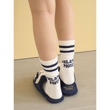 スポーティなラインとカレッジロゴジャガードでトレンド感を演出する、カジュアルなソックスです。薄手の‘エアリーモコ’素材を使用し、部分的にリブ編みを効かせているので足に心地良くフィット。同シリーズのロゴヘアバンドやスニーカールームシューズと組み合わせたり、同時期に展開するスポーティベアシリーズとのコーディネートもおすすめです。