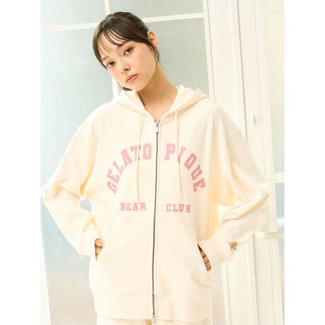 色々なスポーツを楽しむピケベアをテーマに、トレンドのスポーツテイストを取り入れたシリーズです。柔らかな肌触りで着心地の良さを大切にした、ダブルジップ仕様の裏毛パーカ。1枚でもレイヤードでも着こなしやすいゆったりとしたシルエットに、明るい配色のアーチロゴをアクセントにしました。左袖口には色々なスポーツを楽しむベアの絵柄を刺繍しており、アイボリーはストレッチ、グレーはスケートボード、ネイビーはベースボールがモチーフ。いずれもポーズやお顔の表情までこだわった、gelato piqueらしいキュートな絵柄になっています。同シリーズの裏毛ショートパンツや総柄プリントのパンツ、雑貨類を合わせるのもおすすめ。HOMMEサイズとのペアコーディネートもお楽しみいただけます。