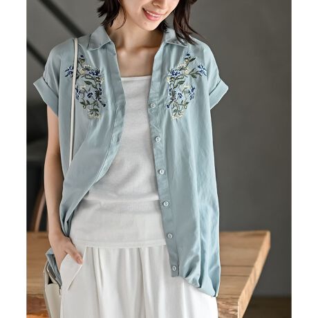フラワーステッチが目を引くスキッパーシャツ