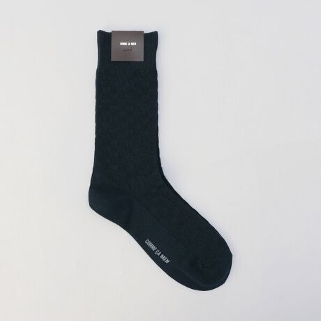 [型番:07-54QM03-205]《デザイン》コムサメン定番デザインの市松ジャガードソックスです。凹凸感の出るリンクスジャガード編み機により、ふっくらと編み上げています。カラフルな5色展開で、ギフトにもお勧めです。《素材》発色の良い綿アクリル糸をベースに使用し裏糸やリブ裏に程よいテンションのポリエステル、ポリウレタン糸を使用しています。