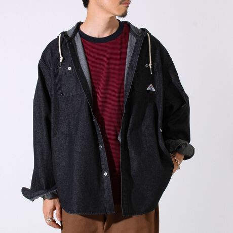 ワークテイストを現代に再構築したデニムフーディーシャツ
