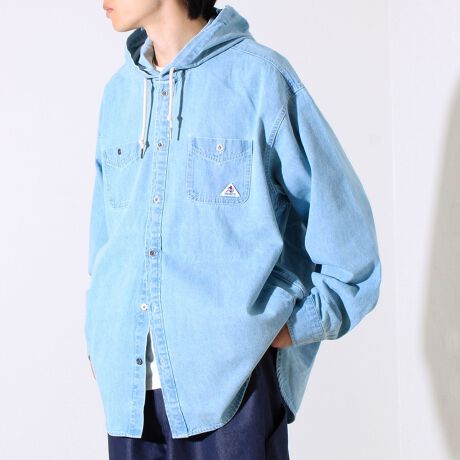 【GEVACO】デニムフーディーシャツ フード付きデニムシャツ