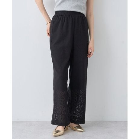 繊細なレースが目を惹くエレガントなイージーパンツ。ワイドなストレートシルエットでどんなトップスにも合わせやすい使い勝手の良いデザインです。ウエスト総ゴムで着脱しやすく、快適な穿き心地も魅力的なポイント。同素材で仕立てたジレと合わせたセットアップでの着用もおすすめです。
