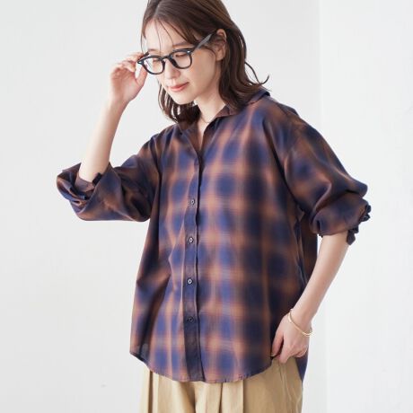 グラデーションのような色合いが魅力のオンブレチェックを、軽やかなシアー素材で仕上げたレギュラーシャツ。