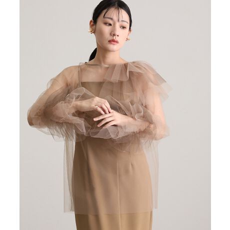 立体感とエアリーさを絶妙に両立させた、チュールフリルトップスとキャミワンピースのセットアイテム。