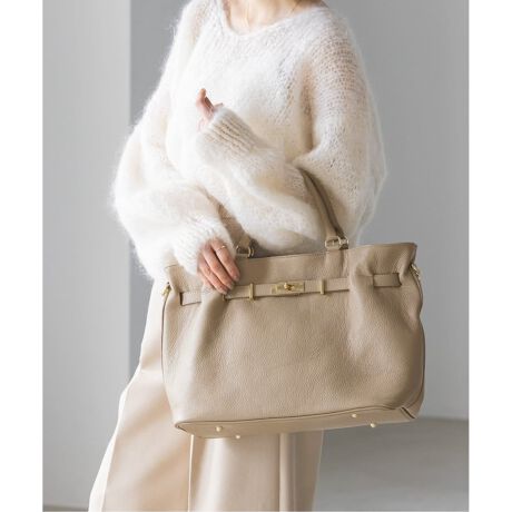 ゴールドの金具とベルト使いがアクセントになったトートバッグ。