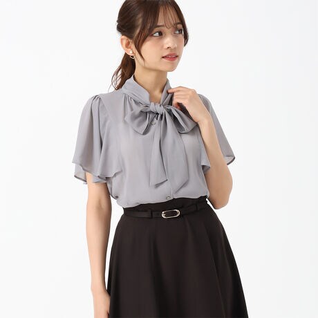 首元のボウタイが女性らしさをプラスするブラウス。袖口が広がるケープ風のデザインになっており、軽やかな印象を与えます。シボ感のある楊柳素材が魅力的。ボトムスにタックインしたコーディネートがおすすめです。■fabric透け感[有り]裏地[無し]伸縮性[やや有り]生地の厚さ[薄手]