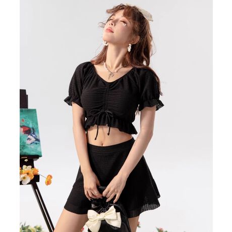 BORA AURA 2点セットワッフルリボンフリル水着体型カバータンキニ