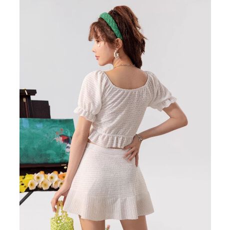 BORA AURA 2点セットワッフルリボンフリル水着体型カバータンキニ