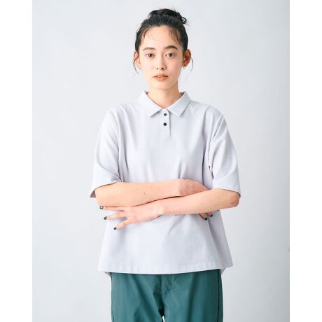 ポンチ素材を使用したポロ衿デザインのプルオーバーです。