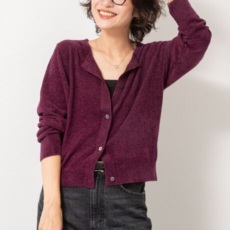 ・トレンド感のあるモール糸のベーシックなクルーネックカーディガン