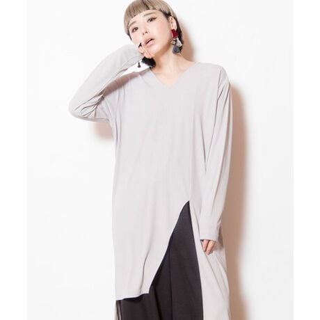 [型番:700006-304T]Vネックとスリット使いがリーンな印象のカットソー。肌にとろりと馴染む、柔らかな着心地も魅力。===========================透け感: ほぼなし(L.GRAY)伸縮性: あり光沢感: 僅かにあり裏地: なし素材について: リブが浅く厚みの少ない、伸びの良いテレコカットソー===========================