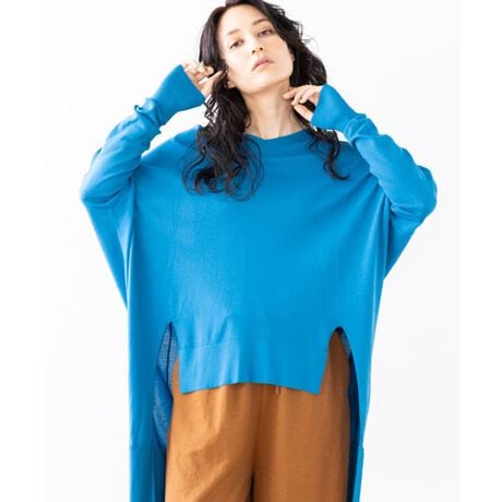 [型番:700010-306K]サイドに柔らかなドレープを生み、着痩せ効果の高いオーバーショルダーのニット。肌心地の良い接触冷感ニットで、暑さが残る時期から着られる。===========================透け感: 僅かにあり(L.GRAY)伸縮性: あり光沢感: なし裏地: なし素材について: 肌触りはひんやりとドライなハイゲージ===========================