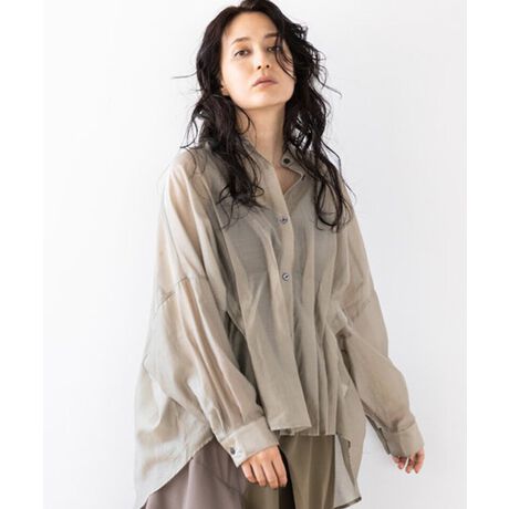 [型番:700006-308B]ボリュームのあるタックデザインを、シアーで軽さに変換。上品な素材感で、カジュアルなのにどこかエレガントさも感じる1枚。===========================透け感: あり伸縮性: なし光沢感: あり裏地: なし素材について: マットなツヤ、軽くてややハリのあるブラウス地===========================