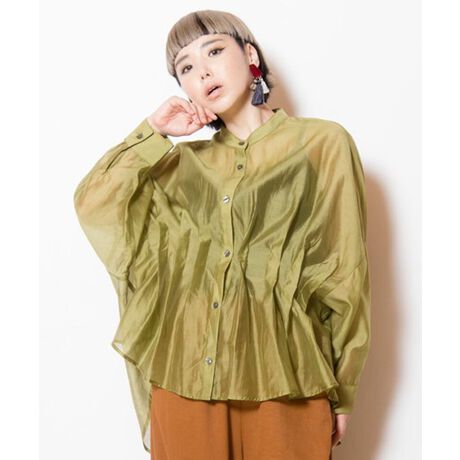 [型番:700006-308B]ボリュームのあるタックデザインを、シアーで軽さに変換。上品な素材感で、カジュアルなのにどこかエレガントさも感じる1枚。===========================透け感: あり伸縮性: なし光沢感: あり裏地: なし素材について: マットなツヤ、軽くてややハリのあるブラウス地===========================