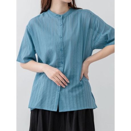 [型番:25410672578]軽やかなドビー生地がシーズンムードを演出するブラウス。ベーシックなバンドカラーになっており、首元にすっきりとした印象を与えます。程よくゆったりとしたシルエットがポイント。パンツスタイルと合わせたラフなコーディネートがおすすめです。Hare no hi/ハレノヒ