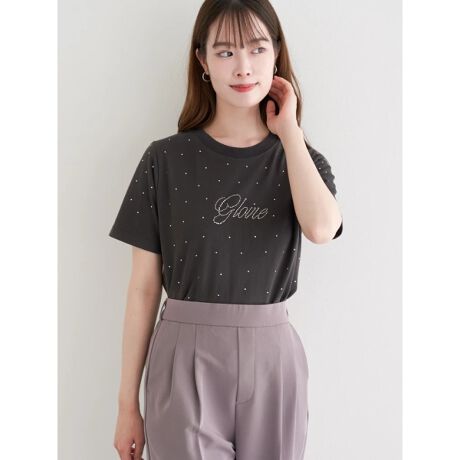 ・ラインストーンのロゴ装飾がコーディネートに華やかさをプラス。