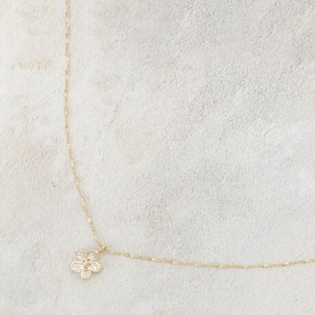 ・愛らしいフラワーモチーフに煌めくビジューをあしらったデザイン。