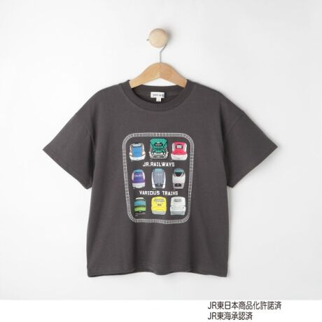 フロントに電車のフェイスをプリントした図鑑風Tシャツは電車好きのキッズにおすすめのTシャツです。