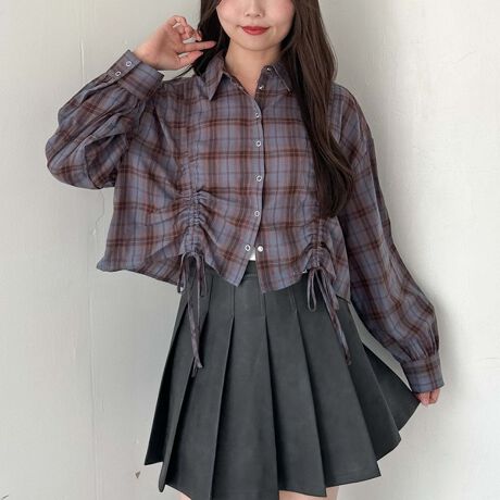 秋らしいチェックシャツ。