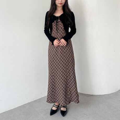 トレンドのバイアスチェック柄を取り入れた、表情豊かなキャミワンピース。