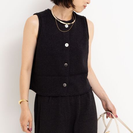 ・素材の良さを楽しめるミニマルなデザインのニットベスト