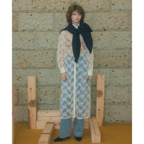 レース素材を使用した存在感のあるシャツワンピース。レース生地で女子っぽさがありながらも衿や前立て、カフスはシャツ地を使用してトラッドな雰囲気も叶えます。デニムやコーデュロイパンツとのレイヤードスタイルがオススメ。インナーを変えると様々なレイヤードスタイルが楽しめます。<素材>繊細でランジェリーライクなレースを使用。衿、前立て、カフスはベーシックなシャツ地を使用しています。<詳細>仕様・前ボタン裏地・なし透け感・あり / 光沢・ややあり / 伸縮性・なし生地の厚さ・薄手※モデルの着用画像の場合、光の当たり具合により、実際の色味と異なって見えることがございます。色味は、商品単体の画像をご参照ください。