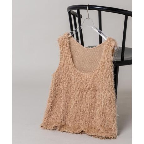 へアリーなフリンジがキャッチーなカットソー素材を使用したクルーネックベスト。鮮度あるレイヤードアイテムで、今年らしいスタイリングが叶います。お尻にかかる丈感と肌離れするシルエットが着やすく、体のラインを拾わないのも嬉しいポイント。すぐに着ることができ、インナーを変えればロングシーズン着ていただけます。<素材>毛足長めのフリンジがキャッチーなカットソー素材を使用。秋らしい雰囲気がありつつ、軽くて透け感があるのですぐに着られる素材です。<詳細>仕様・開閉なし裏地・なし透け感・ややあり / 光沢・なし / 伸縮性・あり生地の厚さ・普通※モデルの着用画像の場合、光の当たり具合により、実際の色味と異なって見えることがございます。色味は、商品単体の画像をご参照ください。