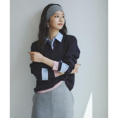 今季トレンドのシャツレイヤード風のニットプルオーバー。ニット襟と布帛襟のダブルカラー(2枚重ねた襟)がポイント。袖口は布帛のカフスをドッキングして、シャツを重ね着しているような仕上がりに。襟のボタンを開けて、抜け感のある着こなしも◎。ゆるっとしたシルエット感とショート丈なので、カジュアルパンツ合わせがおすすめです。<素材>ボディは清涼感のあるタッチの糸を総針編みニット。襟と袖口の布帛部分はブロード素材を使用しています。<詳細>仕様・前ボタン裏地・なし透け感・なし / 光沢・なし / 伸縮性・あり※モデルの着用画像の場合、光の当たり具合により、実際の色味と異なって見えることがございます。色味は、商品単体の画像をご参照ください。