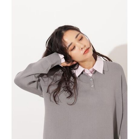 今季トレンドのシャツレイヤード風のニットプルオーバー。ニット襟と布帛襟のダブルカラー(2枚重ねた襟)がポイント。袖口は布帛のカフスをドッキングして、シャツを重ね着しているような仕上がりに。襟のボタンを開けて、抜け感のある着こなしも◎。ゆるっとしたシルエット感とショート丈なので、カジュアルパンツ合わせがおすすめです。<素材>ボディは清涼感のあるタッチの糸を総針編みニット。襟と袖口の布帛部分はブロード素材を使用しています。<詳細>仕様・前ボタン裏地・なし透け感・なし / 光沢・なし / 伸縮性・あり※モデルの着用画像の場合、光の当たり具合により、実際の色味と異なって見えることがございます。色味は、商品単体の画像をご参照ください。