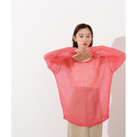 モヘヤブレンドの糸を使用した繊細な印象のルーズなシアーニット。オーバーサイズで華奢見えするデザインです。ふわっとした起毛感のある糸でも、ざっくりとしたシアーな編地なのですぐに着ることができ、インナー次第で長く活躍。コーディネートに取り入れるだけで大人っぽく抜け感のあるスタイリングが叶います。<素材>ふわっとした起毛感で肌触りが良い、軽やかなモヘヤ混の糸を使用。透け感のある繊細な編地です。<詳細>仕様・開閉なし裏地・なし透け感・あり / 光沢・なし / 伸縮性・あり生地の厚さ・薄手※モデルの着用画像の場合、光の当たり具合により、実際の色味と異なって見えることがございます。色味は、商品単体の画像をご参照ください。