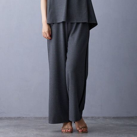 ブラウスやシャツなどのきれいめ素材と合わせて大人キレイめコーデ。Tシャツなどのラフ素材とあわせてもこなれ感を演出できる大人イージーパンツは重宝するアイテムです。