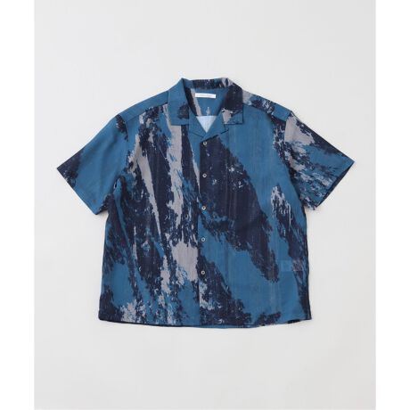 抽象的な柄が特徴のカラミ素材の半袖シャツ。