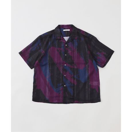抽象的な柄が特徴のカラミ素材の半袖シャツ。