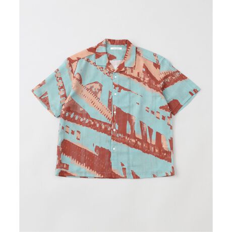 抽象的な柄が特徴のカラミ素材の半袖シャツ。