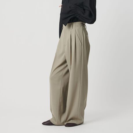 裾幅はゆったりとしながらも腰周りはボリュームが出過ぎないワイドストレートのシルエット。