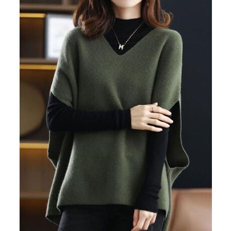 ニットトップスとベストの“いいとこ取り”をした、リラクシーな雰囲気漂う一枚。