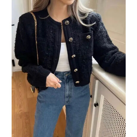 上品クラシカルな雰囲気漂う、ツイード風ニットカーディガン。