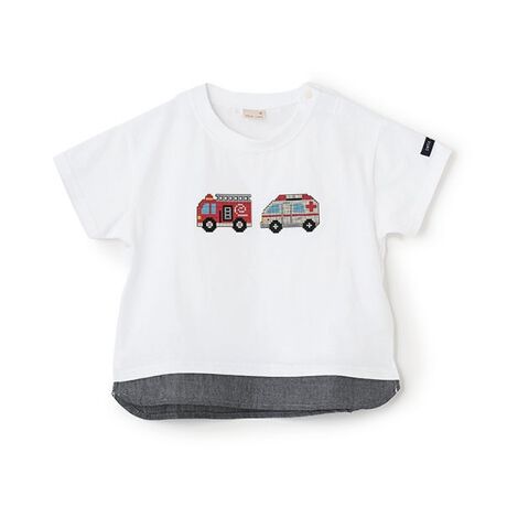 ブロック調のプリントがユニークな半袖Tシャツです。