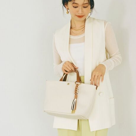 ボディは持つだけでコーディネートを格上げしてくれそうな、シンプルながらも上品な配色で仕上げたトート。